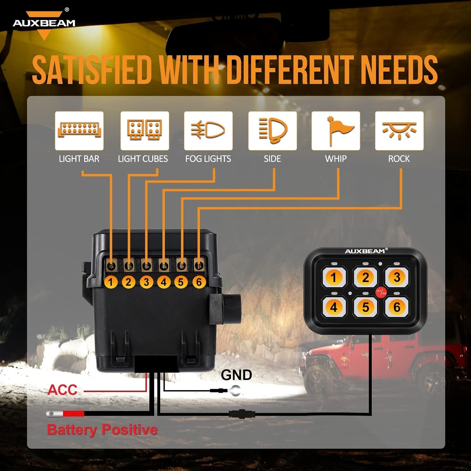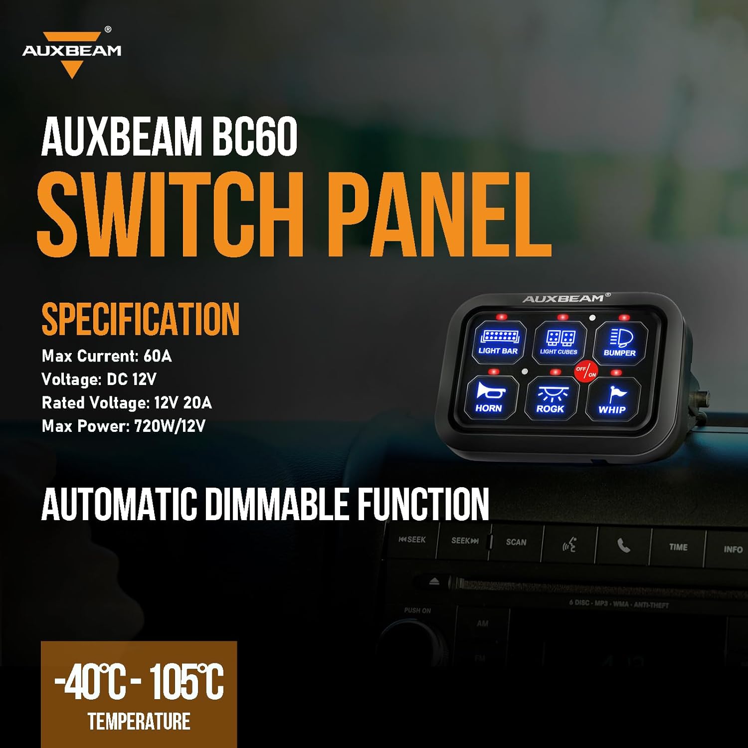Tired of tangled wiring and unorganized electronic accessories? This 12V 6 gang switch panel simplifies controlling your vehicle’s lights, gadgets, and gear—with easy installation, safety-focused design, and a space-saving build. Perfect for trucks, boats, off-roads, SUVs, ATVs, UTVs, and more.