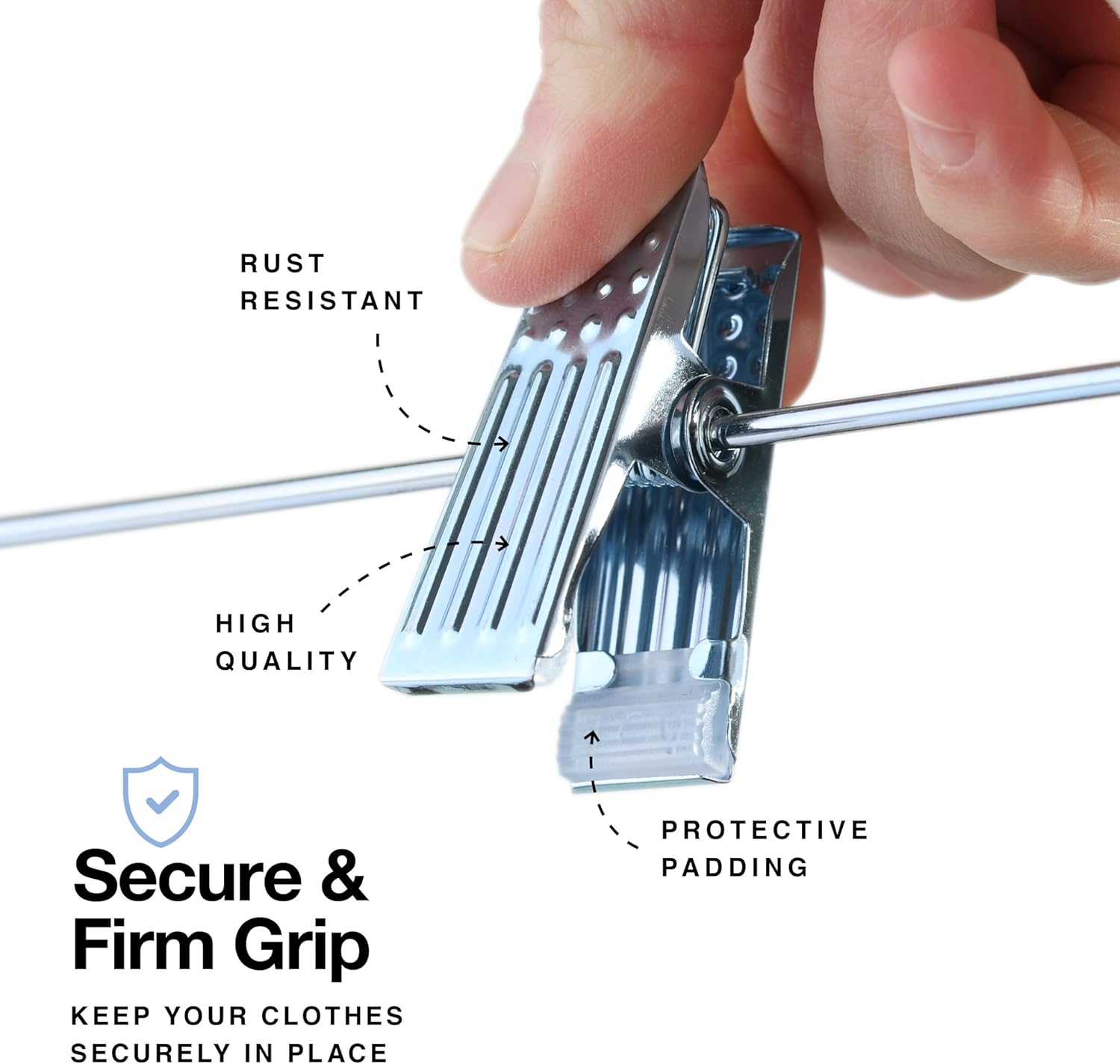 Adjustable Clips: Two sturdy metal clips slide easily along the bar, allowing you to customize the width to fit garments of various sizes.