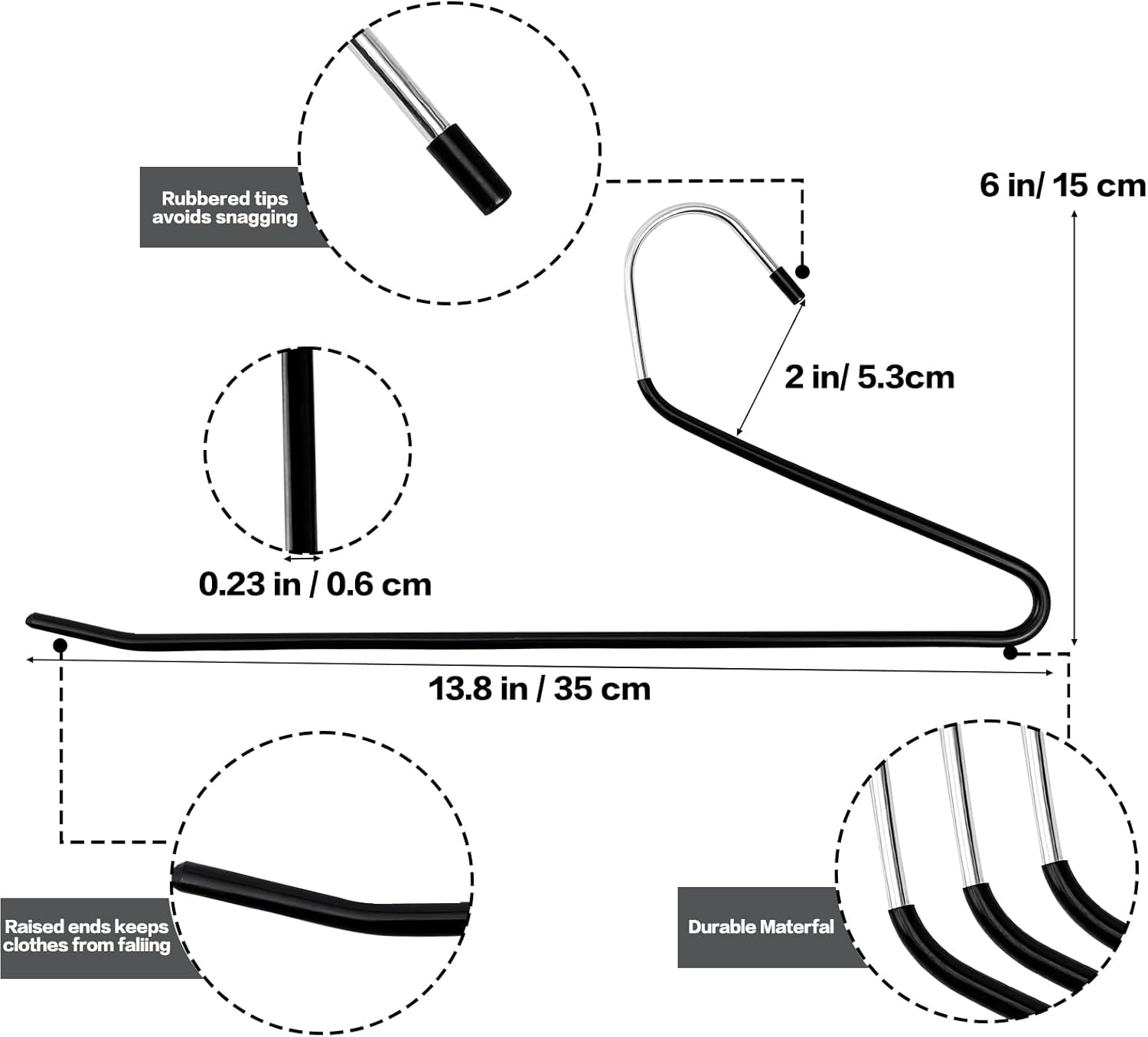 This 30-pack of metal hangers is designed for functionality, durability, and space efficiency. Each hanger measures 13.8 inches long, 6 inches high, with a diameter of 0.23 inches (0.6 cm), offering a compact yet strong solution for organizing clothing and accessories.